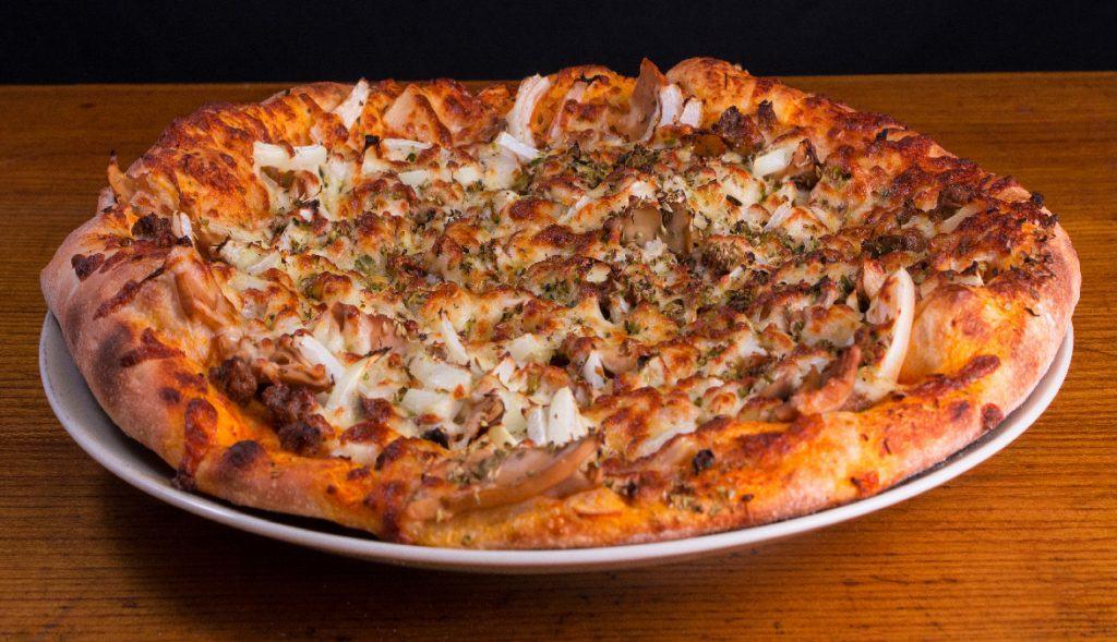 Ost, tomatsós, oksakjøt, soppar, leyk, oregano